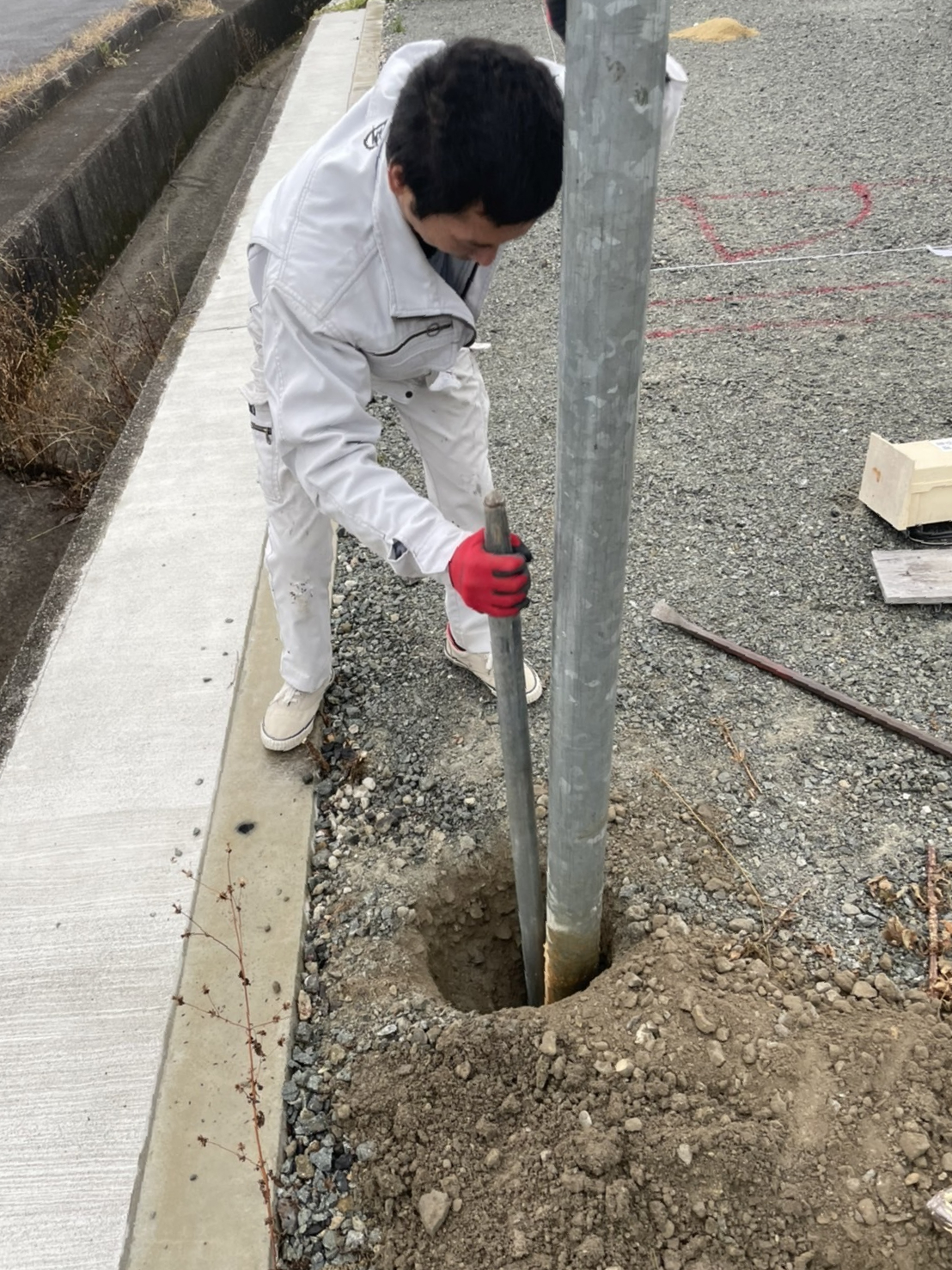 地鎮祭が終わったら、工事がスタート。地鎮祭後に工事をする際に使うための仮設電源を設置するのが最初の仕事です。